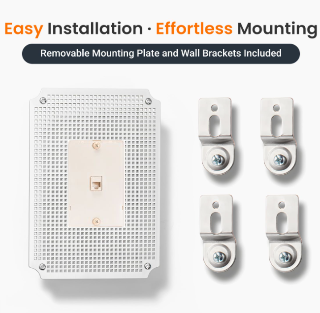 - Comes with mounting accessories: one pre-installed mounting plate, four (4) brackets, and screws.